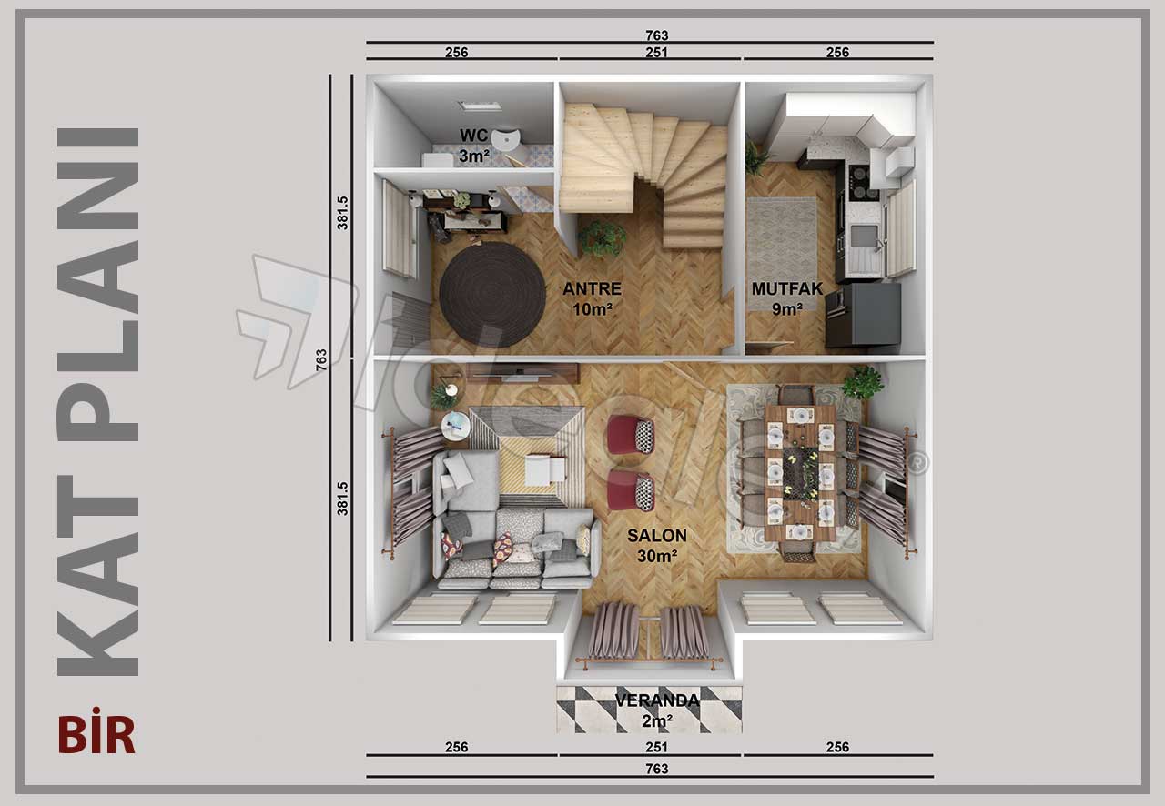 Prefabrik bina malzemeleri (Duvar panelleri, çelik birleşim elemanları, tavan kaplaması, tavan izolasyonu ve çatı kaplama malzemeleri), dış kapısı çelik kapı, iç kapılar Amerikan kapı, balkon kapıları PVC camlı kapı, pencerelerin, vasistasların takılması, binanın iç ve dış cephe boyasının yapılması, bina içerisindeki elektrik ve su tesisatlarının çekilmesi, elektrik ve su armatürlerinin verilmesi fiyata dahildir.