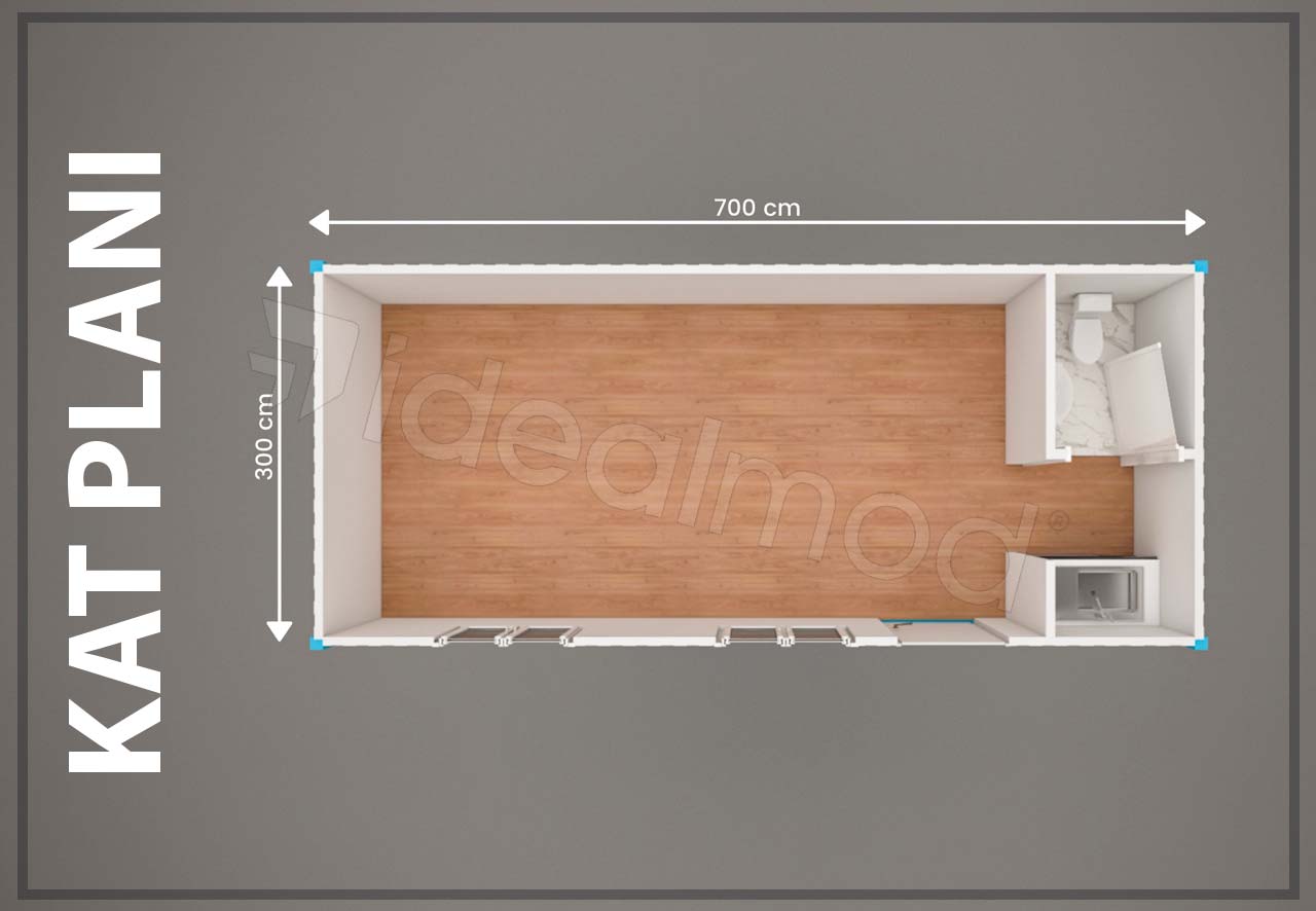 Standart konteynerlarımız 2.40×6 m veya 3×7 m olarak üretilebilmektedir.